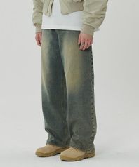 DART BRUSH WIDE DENIM PANTS SAND BLUE