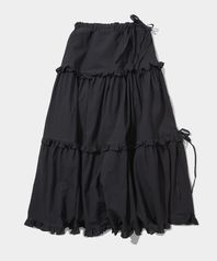캉캉 프릴 플레어 리본 셔링 롱 코튼 스커트 [블랙]