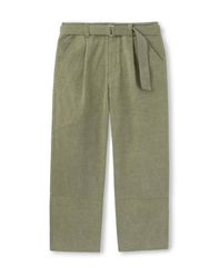 ONE TUCK WASHED BELTED PANTS DUSTY GREEN