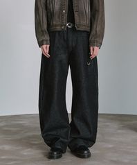 플리츠 커브드 데님 팬츠