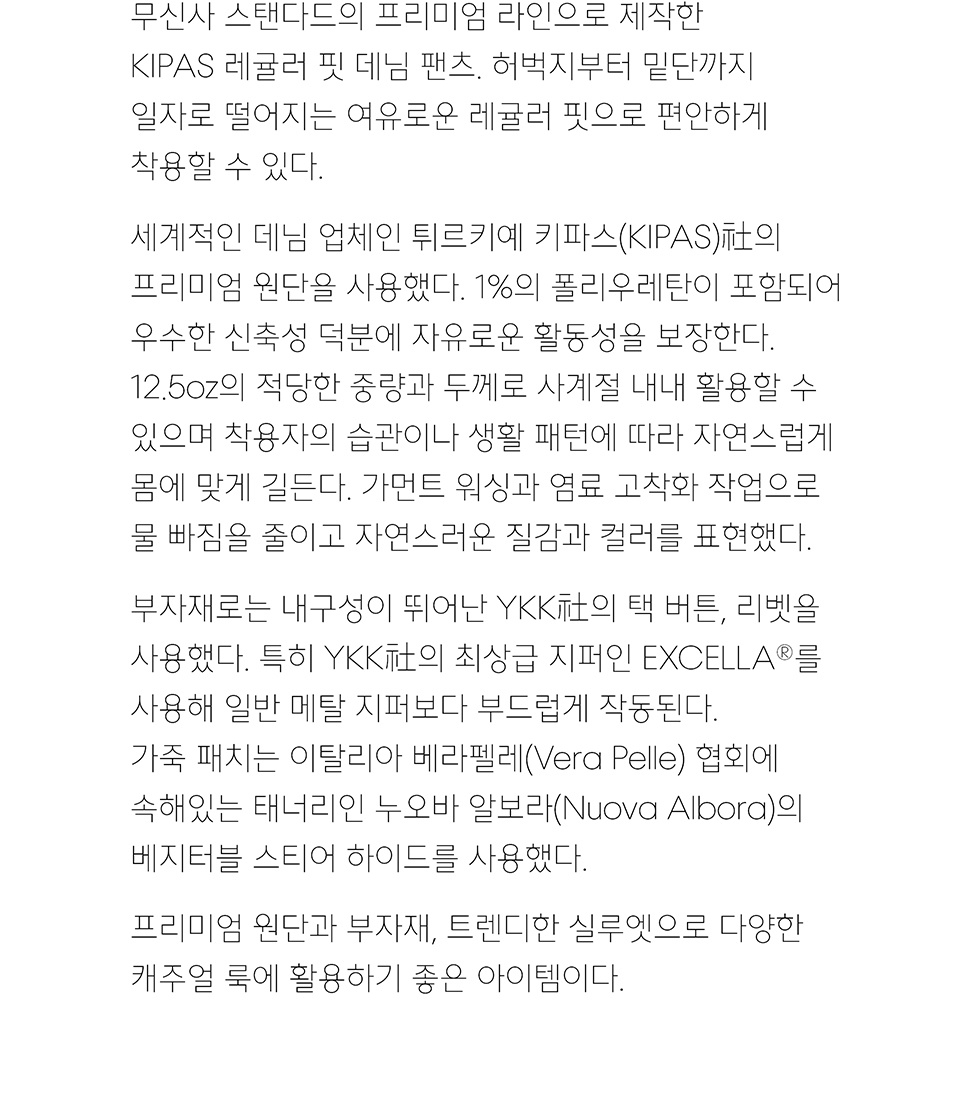 KIPAS 레귤러 핏 데님 팬츠 [딥 인디고]