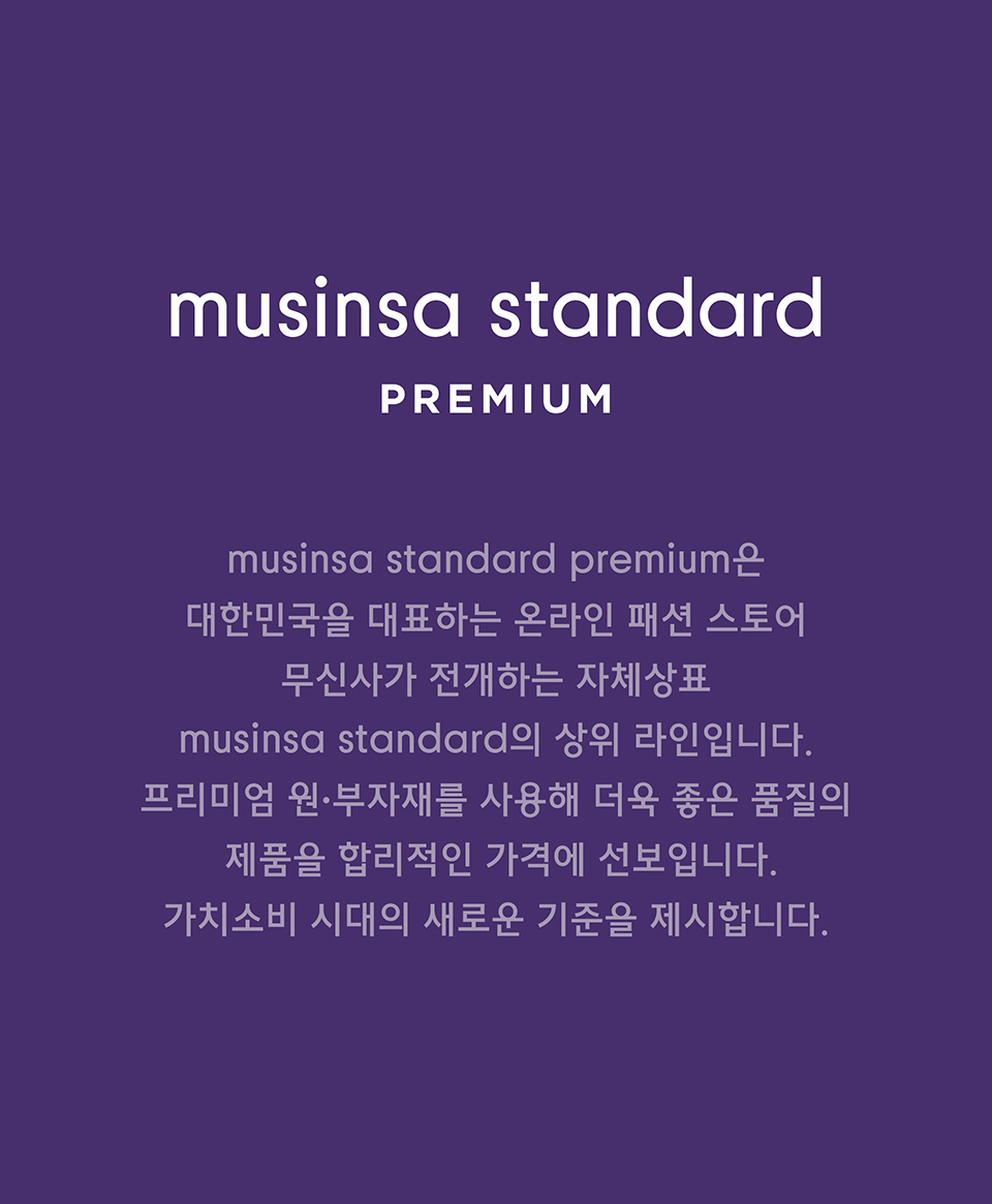 무신사 스탠다드(MUSINSA STANDARD)는 대한민국을 대표하는 온라인 패션 스토어 무신사가 전개하는 자체상표(Private Brand)이며, 모던 베이식 캐주얼웨어를 지향합니다. 단순한 유통구조의 효율적인 운영으로 좋은 품질의 제품을 합리적인 가격에 선보입니다. 가치소비 시대의 새로운 기준을 제시합니다.