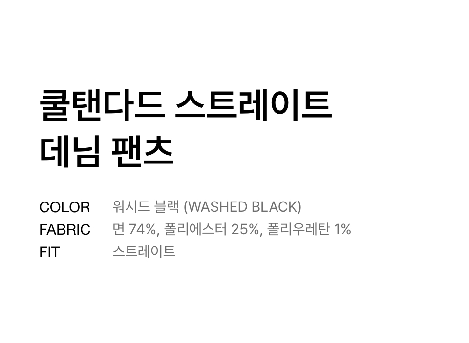 [쿨탠다드] 스트레이트 데님 팬츠 [워시드 블랙]