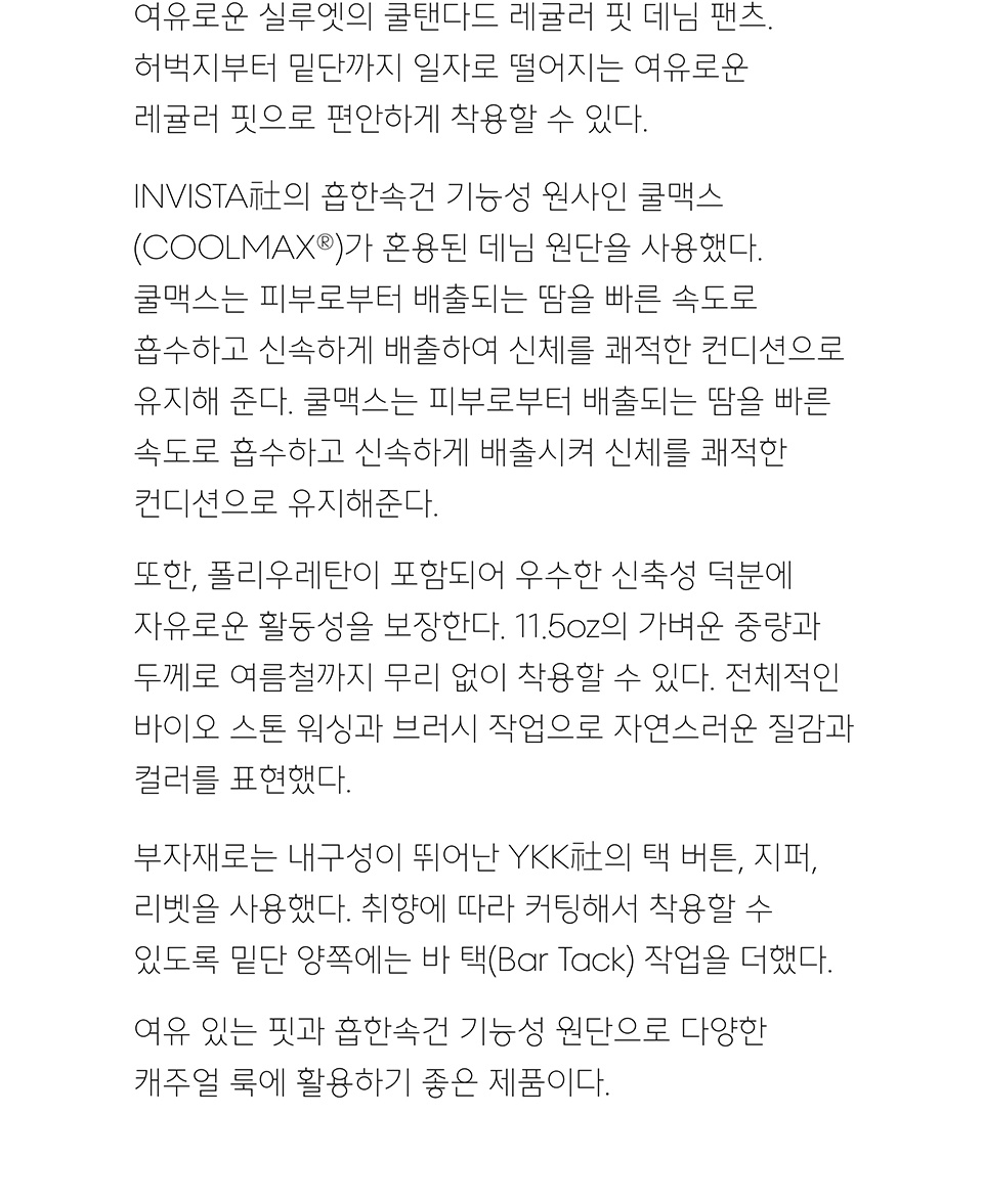 [쿨탠다드] 레귤러 핏 데님 팬츠 [워시드 블랙]