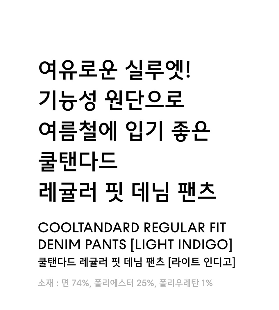 [쿨탠다드] 레귤러 핏 데님 팬츠 [라이트 인디고]