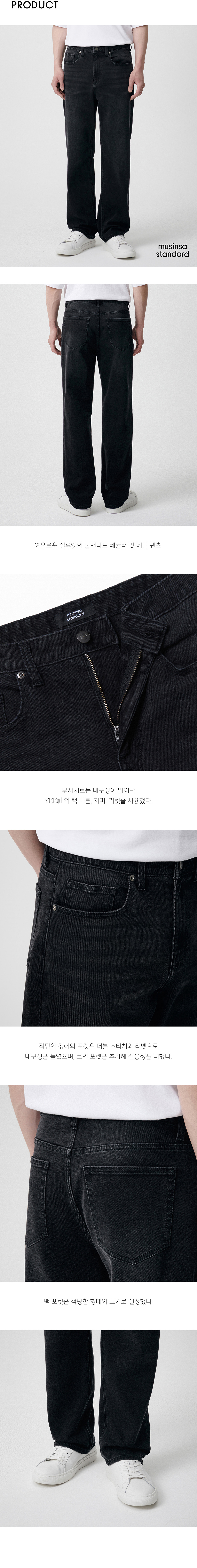 [쿨탠다드] 레귤러 핏 데님 팬츠 [워시드 블랙]