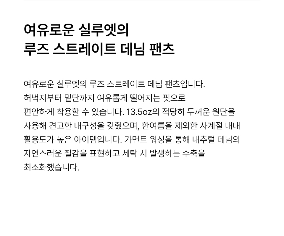 루즈 스트레이트 데님 팬츠 [라이트 인디고]