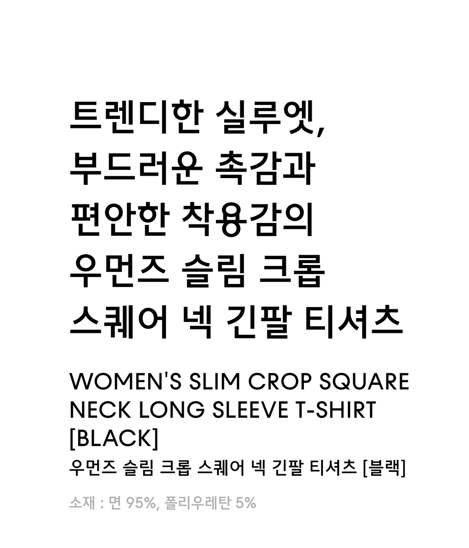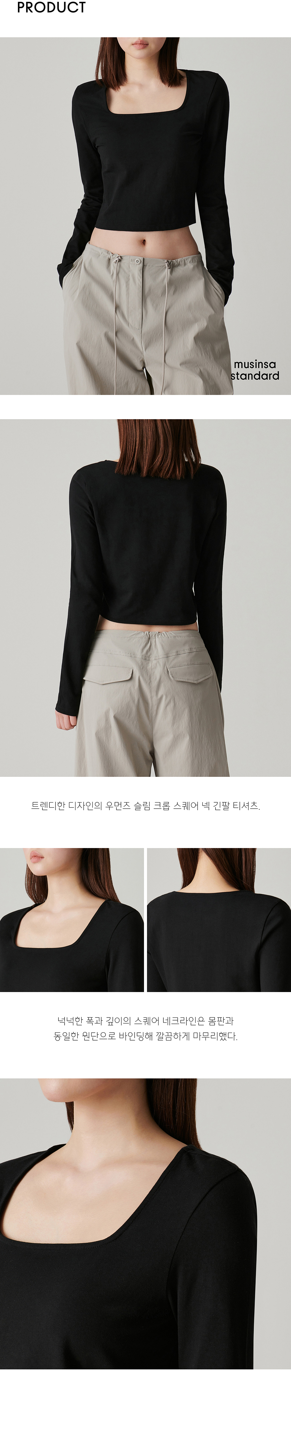 우먼즈 슬림 크롭 스퀘어 넥 긴소매 티셔츠 [블랙]