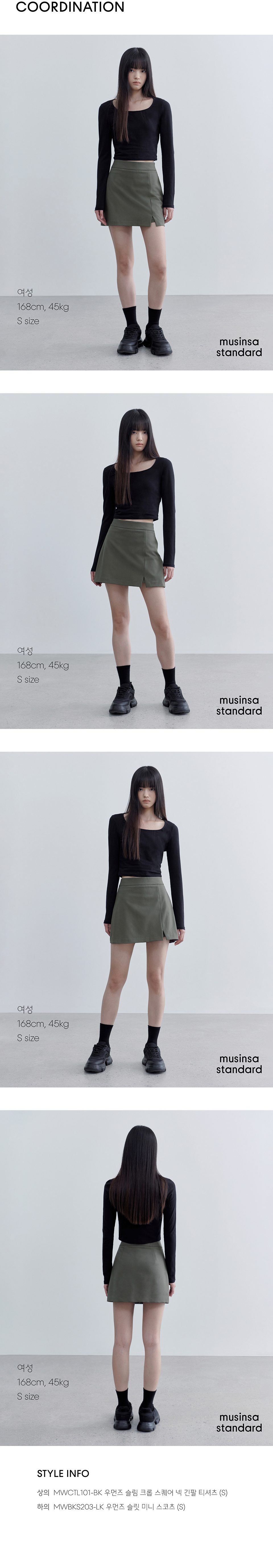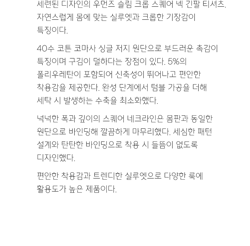 우먼즈 슬림 스퀘어 넥 티셔츠 [블랙]