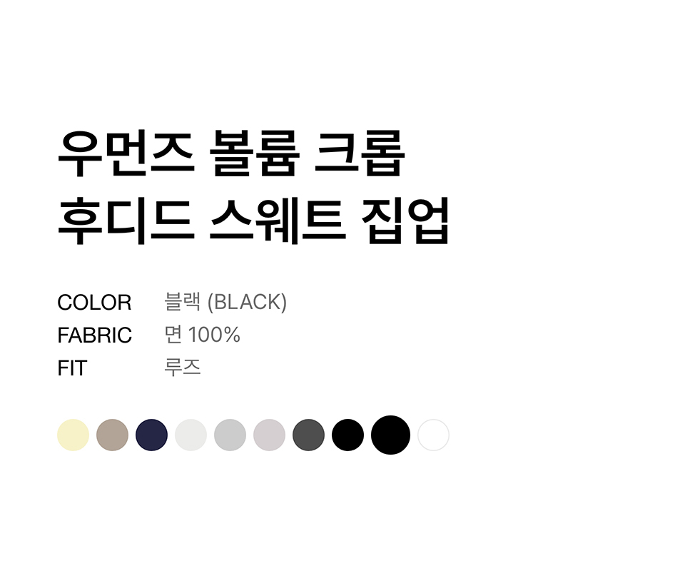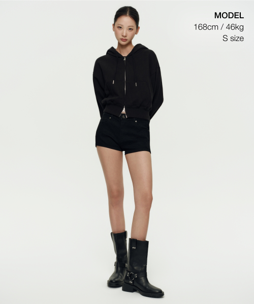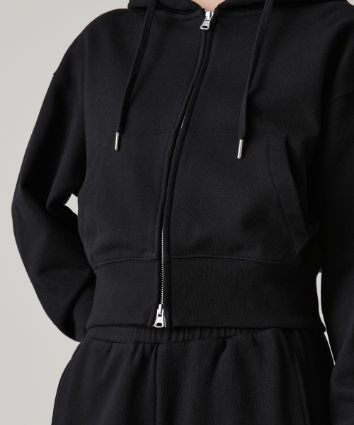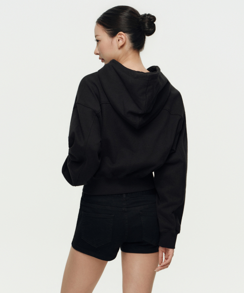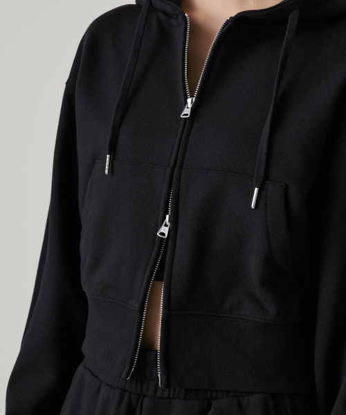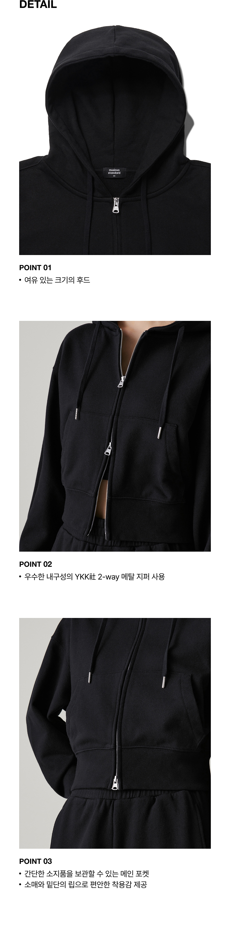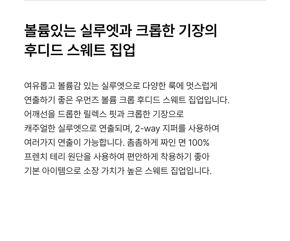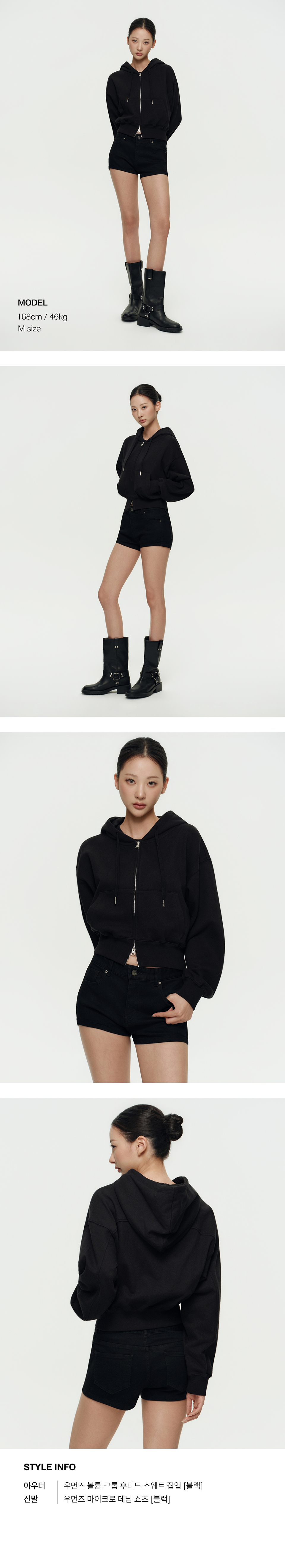 우먼즈 볼륨 크롭 후디드 스웨트 집업 [블랙]