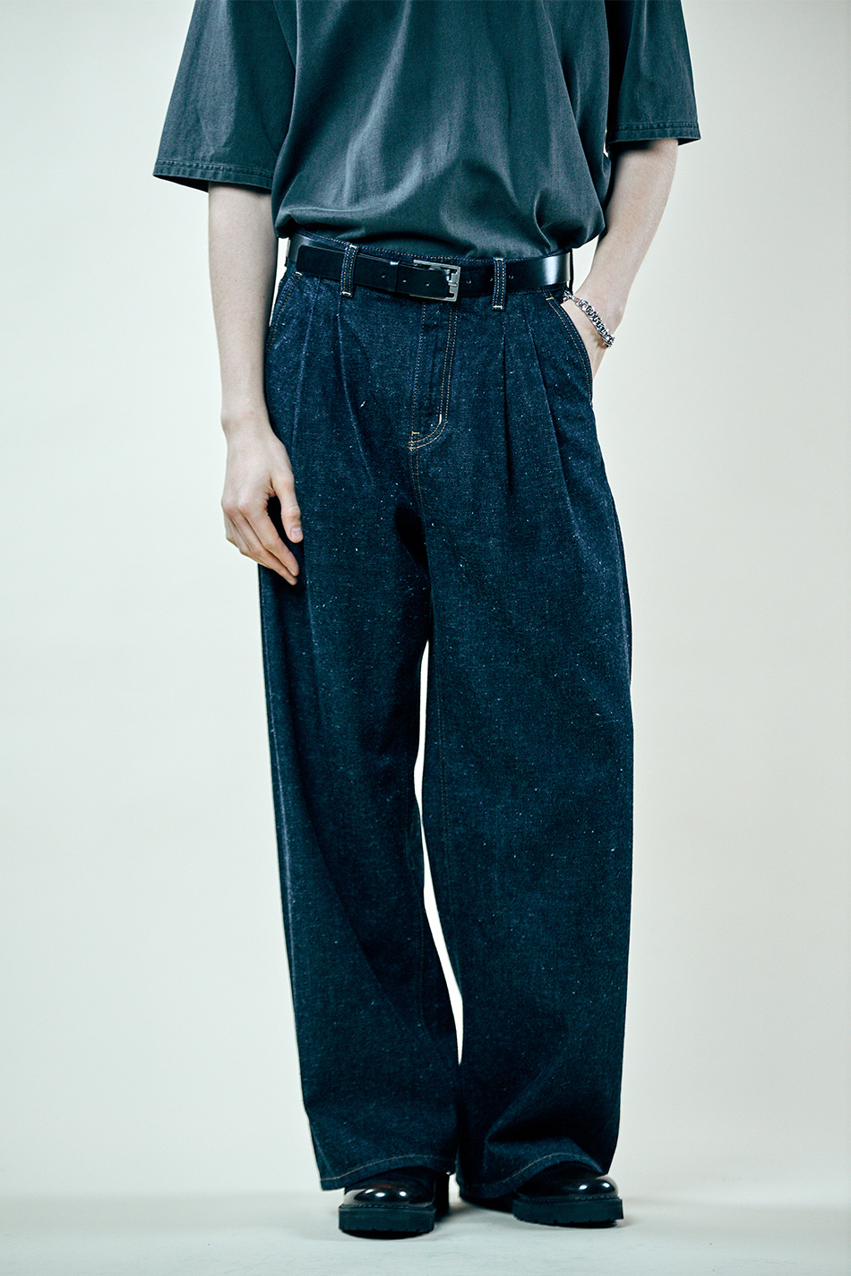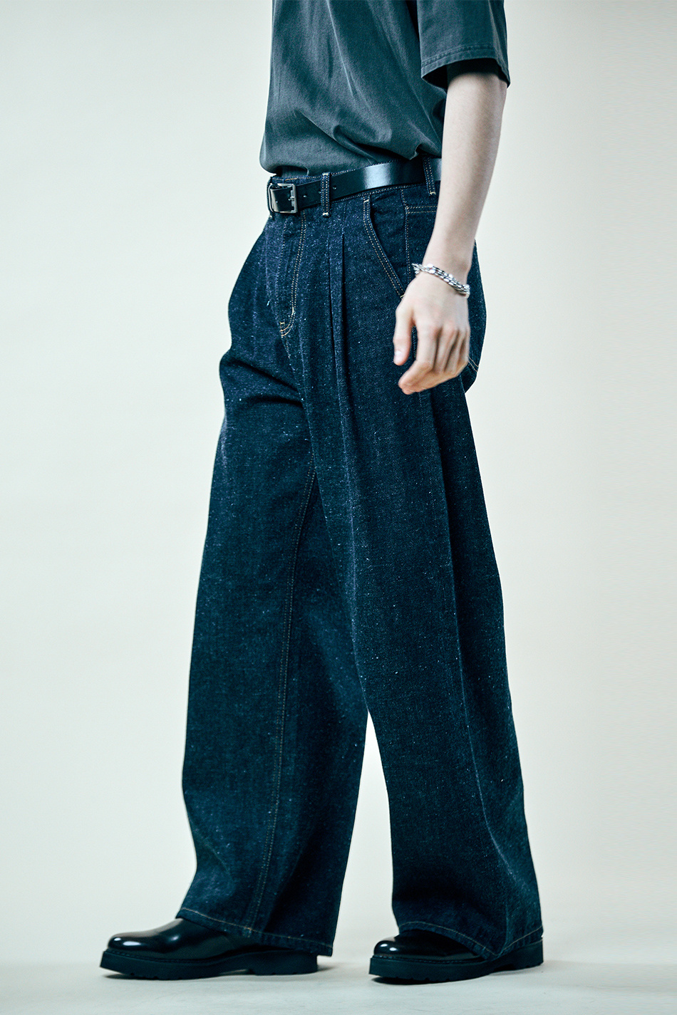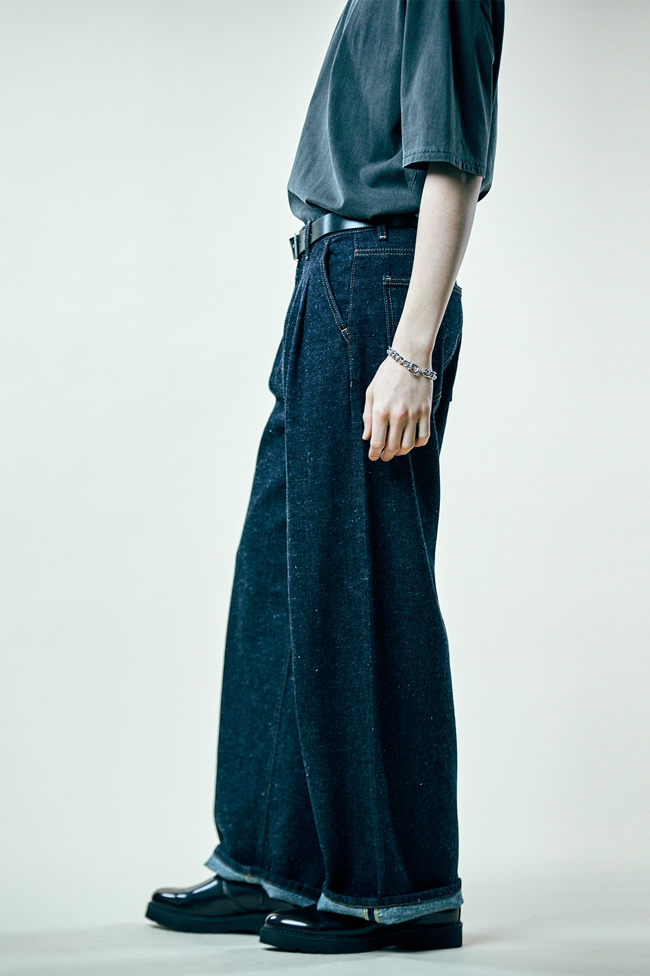 네프 셀비지 투턱 와이드 팬츠