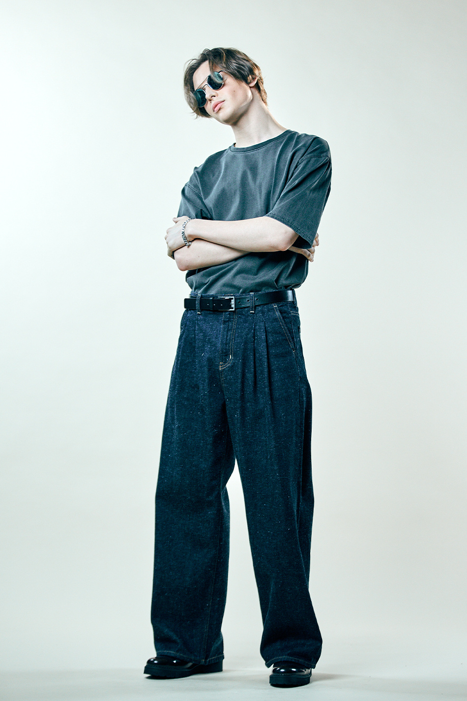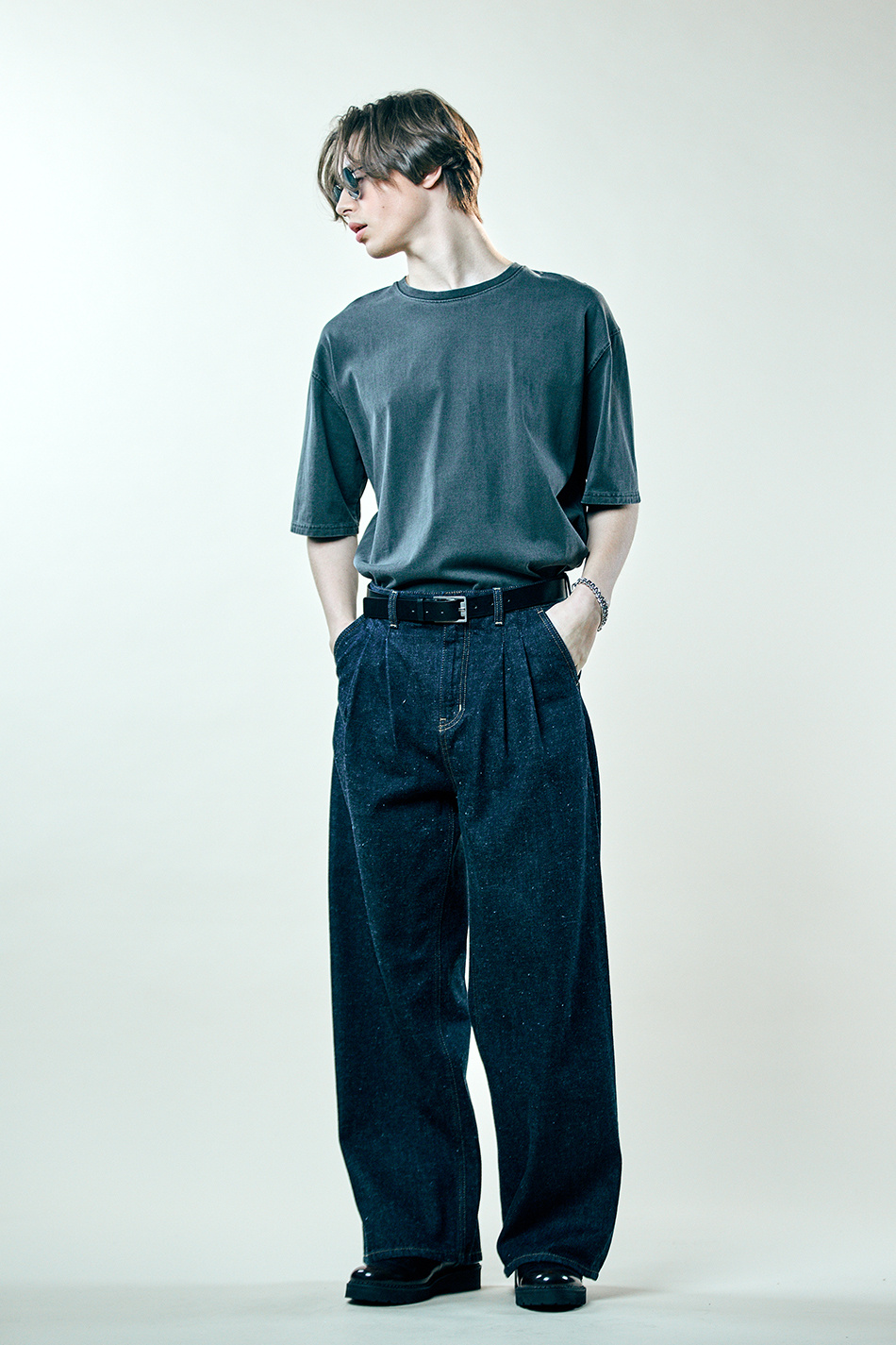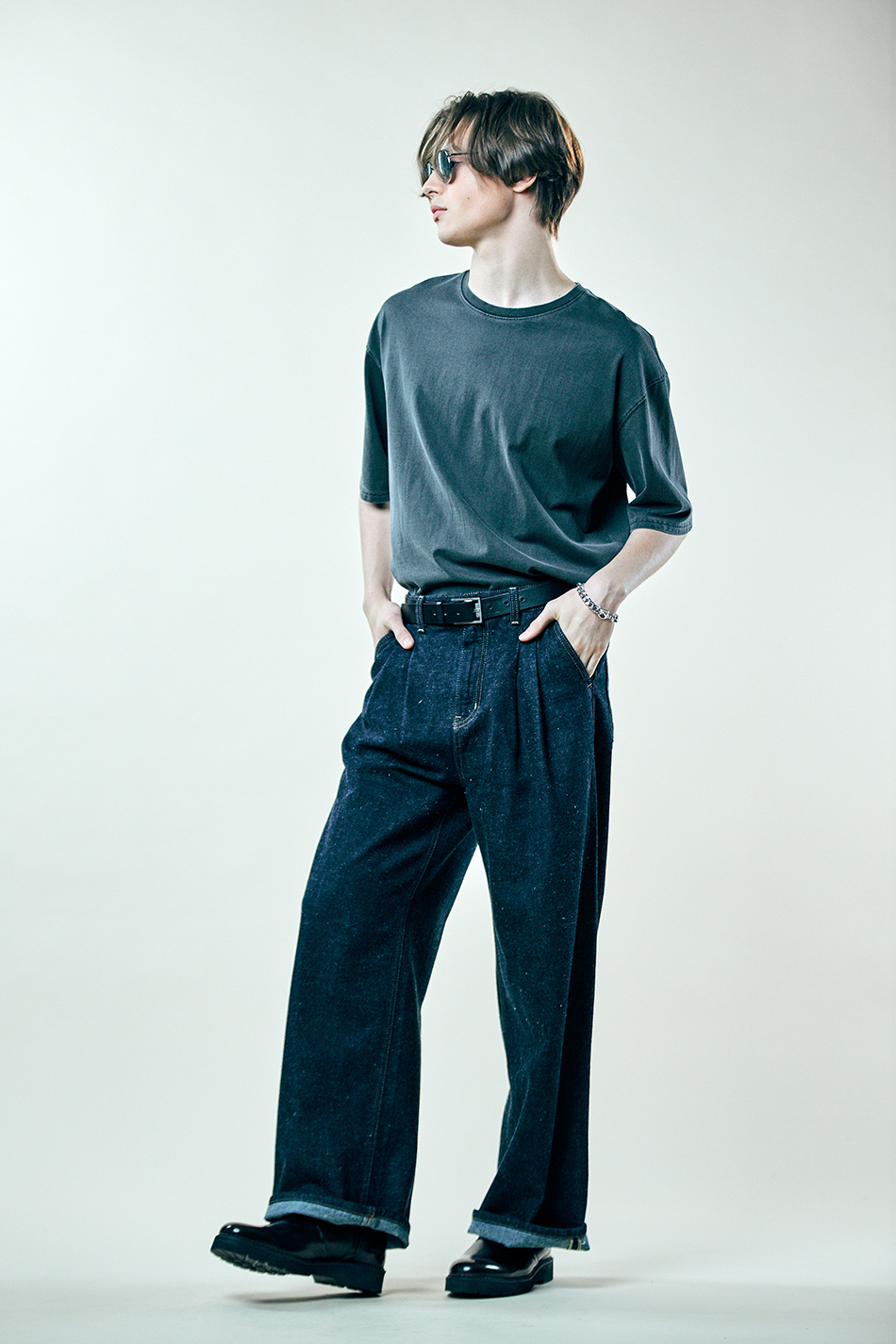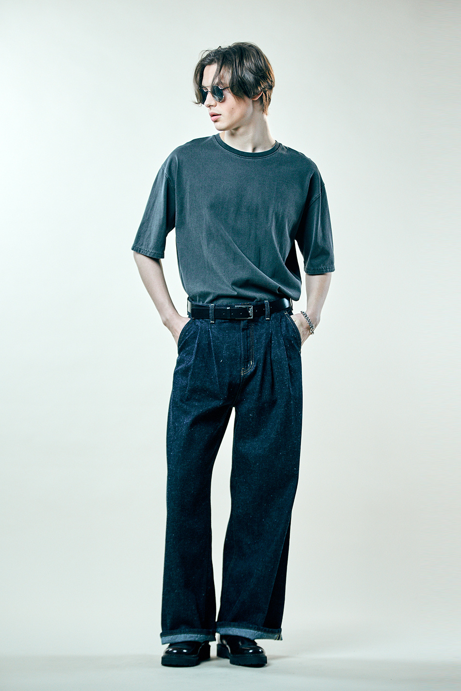 네프 셀비지 투턱 와이드 팬츠
