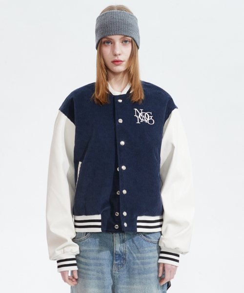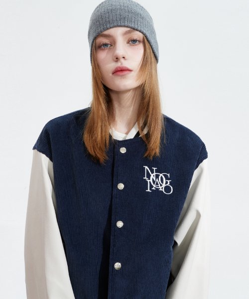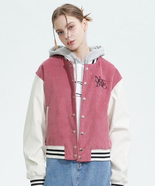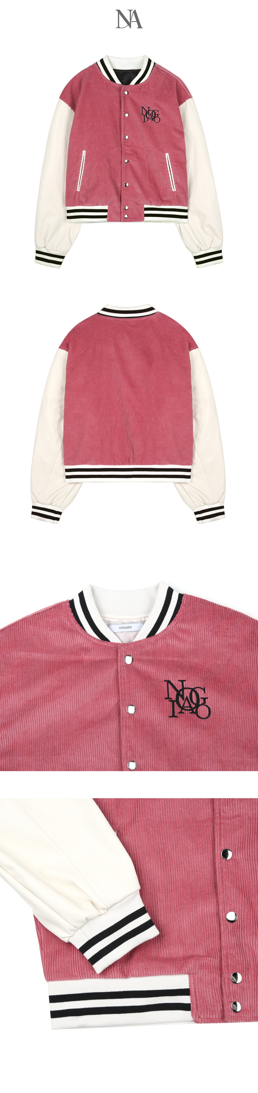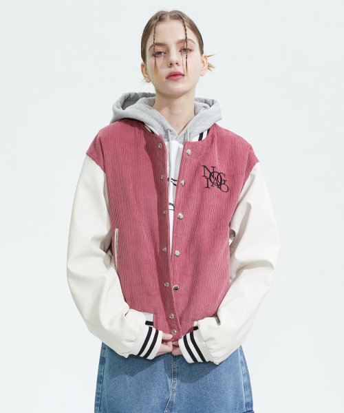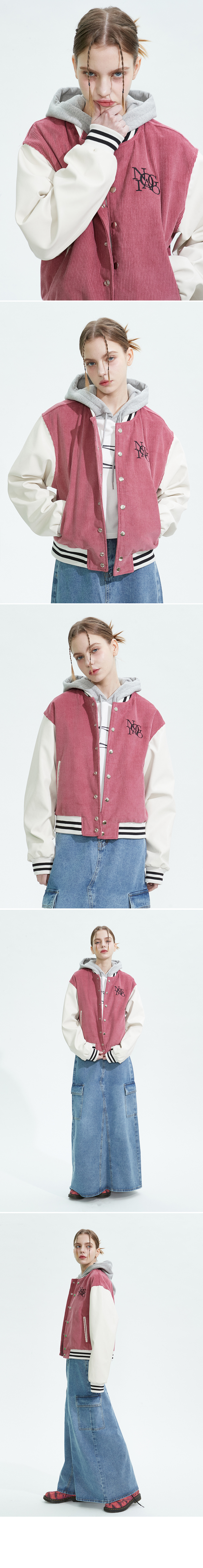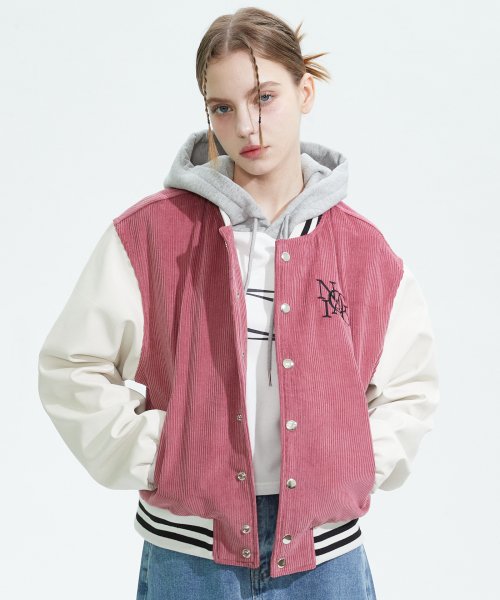 NOI856 코듀로이 바시티 자켓 (페일핑크)