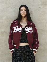 (W) 크롭 빅 로고 파이핑 블루종 -버건디