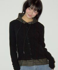체크 프릴 레이어드 후드 스트링 롱 슬리브 가디건_2COLOR