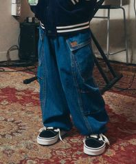 KIDS TAG DENIM POCKET PANTS - BLUE