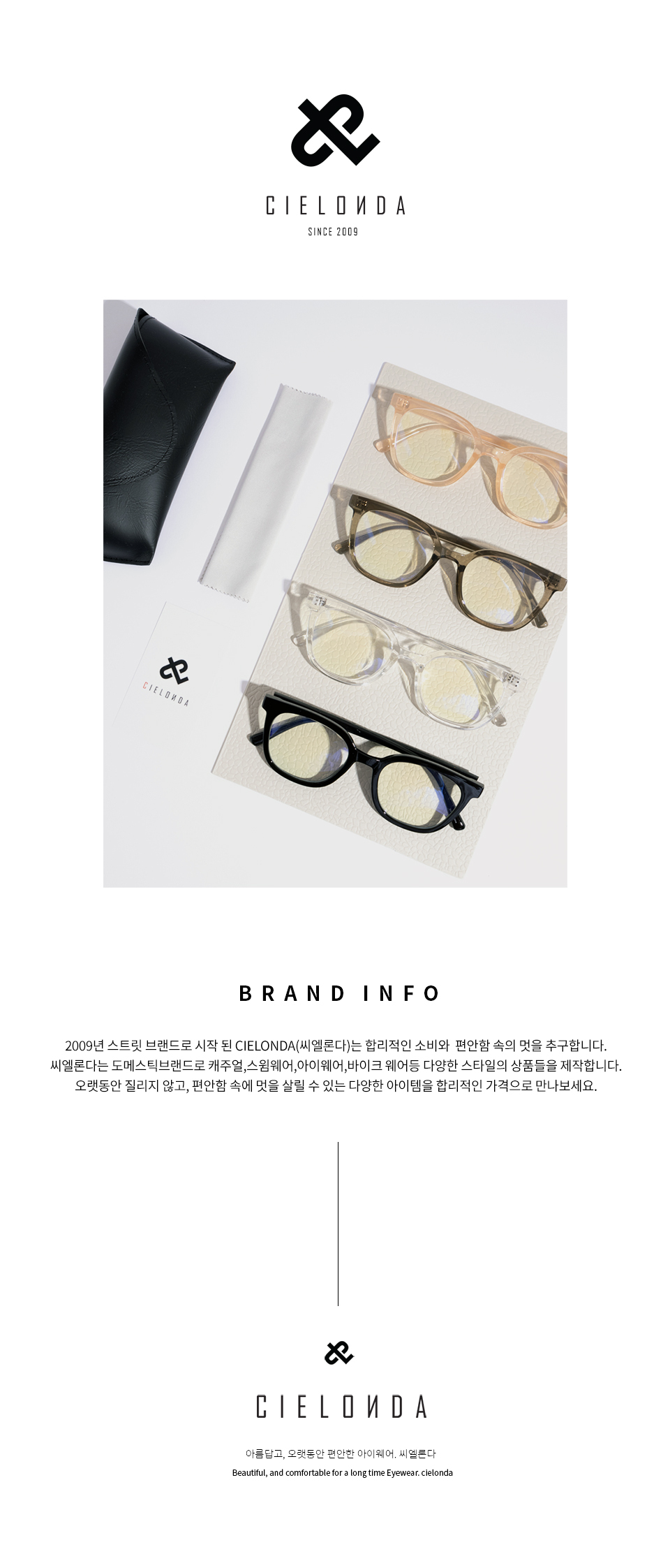 CIELONDA(씨엘론다)는 2009년 새로운 것에 대한 도전으로 탄생된 스트리트 스포츠 웨어 브랜드입니다. 화려함과 복잡함에서 탈피한 씨엘론다는 클래식과 모더니즘의 조화를 이뤘으며 세련된 컬러감이 돋보이는 제품을 앞으로도 만들어 갈 것입니다.
