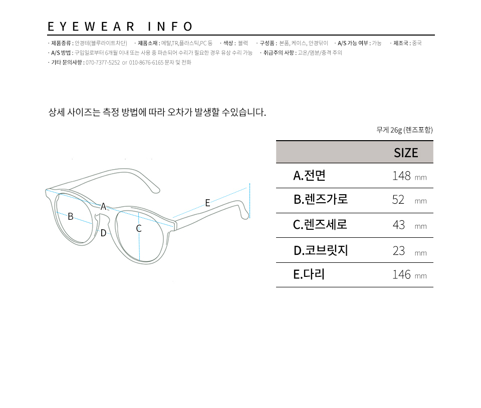 라울 RAUL 블랙 투브릿지 안경테