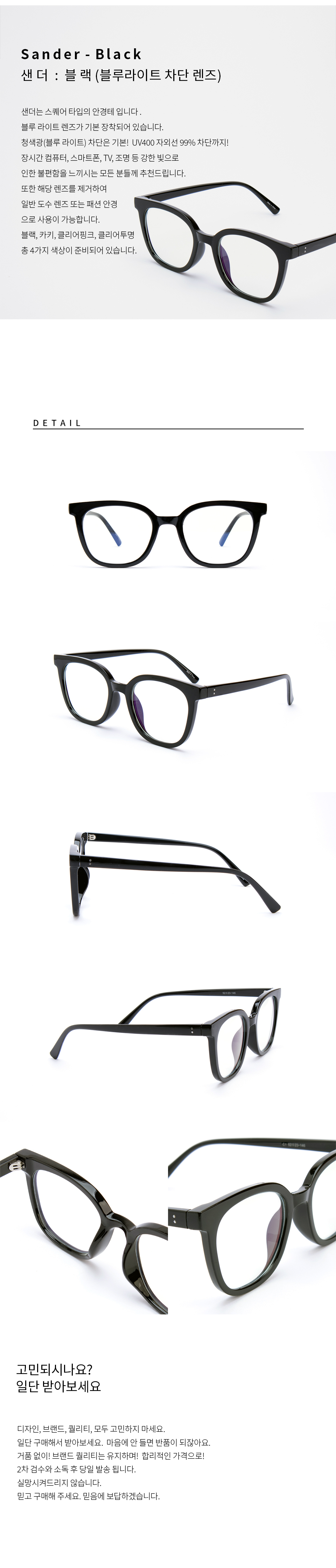SANDER 샌더 블랙 뿔테 블루라이트 차단 안경테