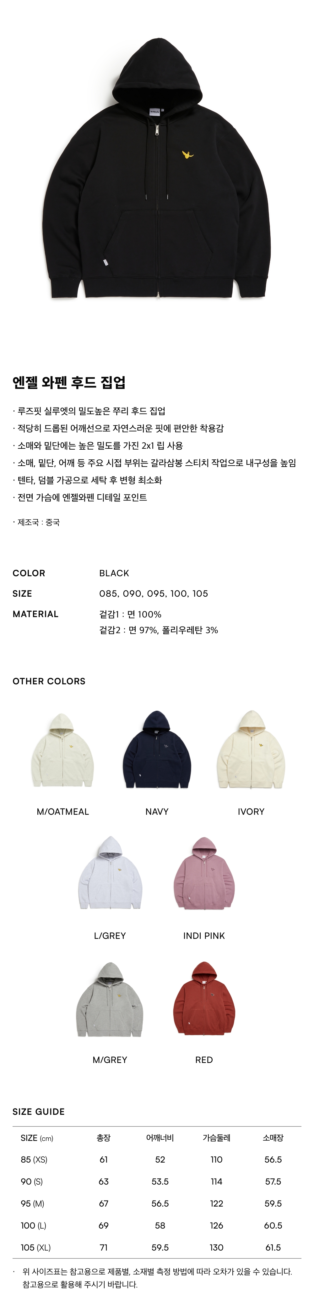 엔젤 와펜 후드 집업 - BLACK