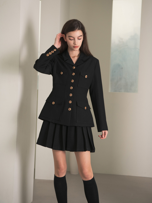 YY New_flat collared pleated two-piece set