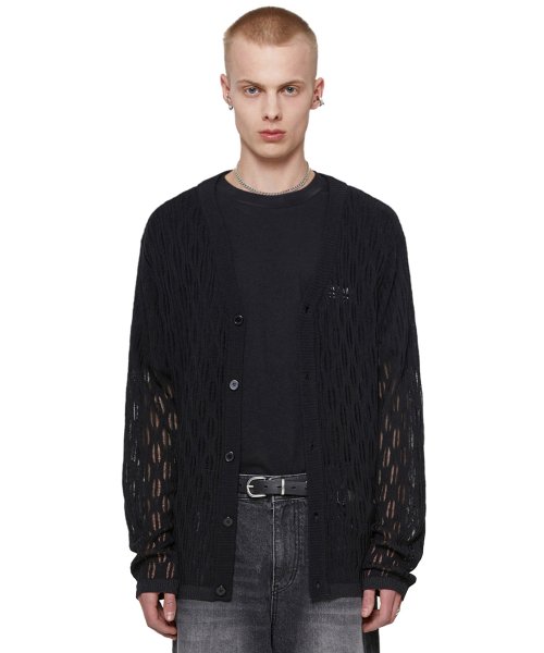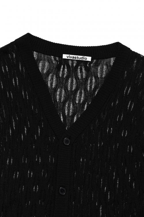 WAVE V-NECK CARDIGAN [BLACK]