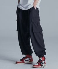 Wide String Cargo Slacks Pants - Black