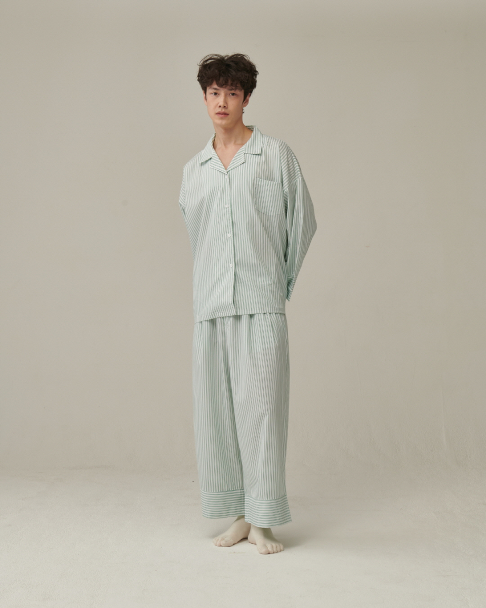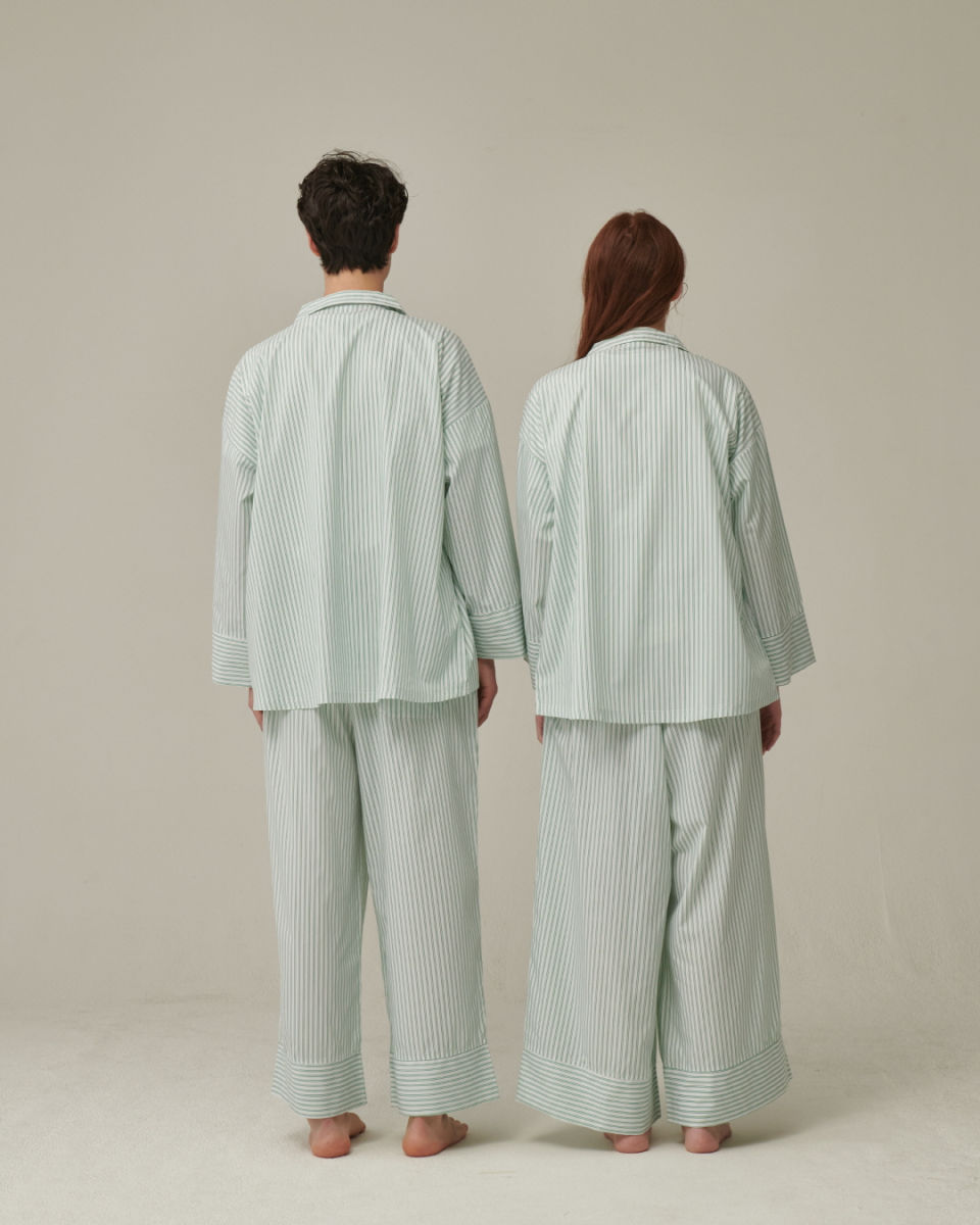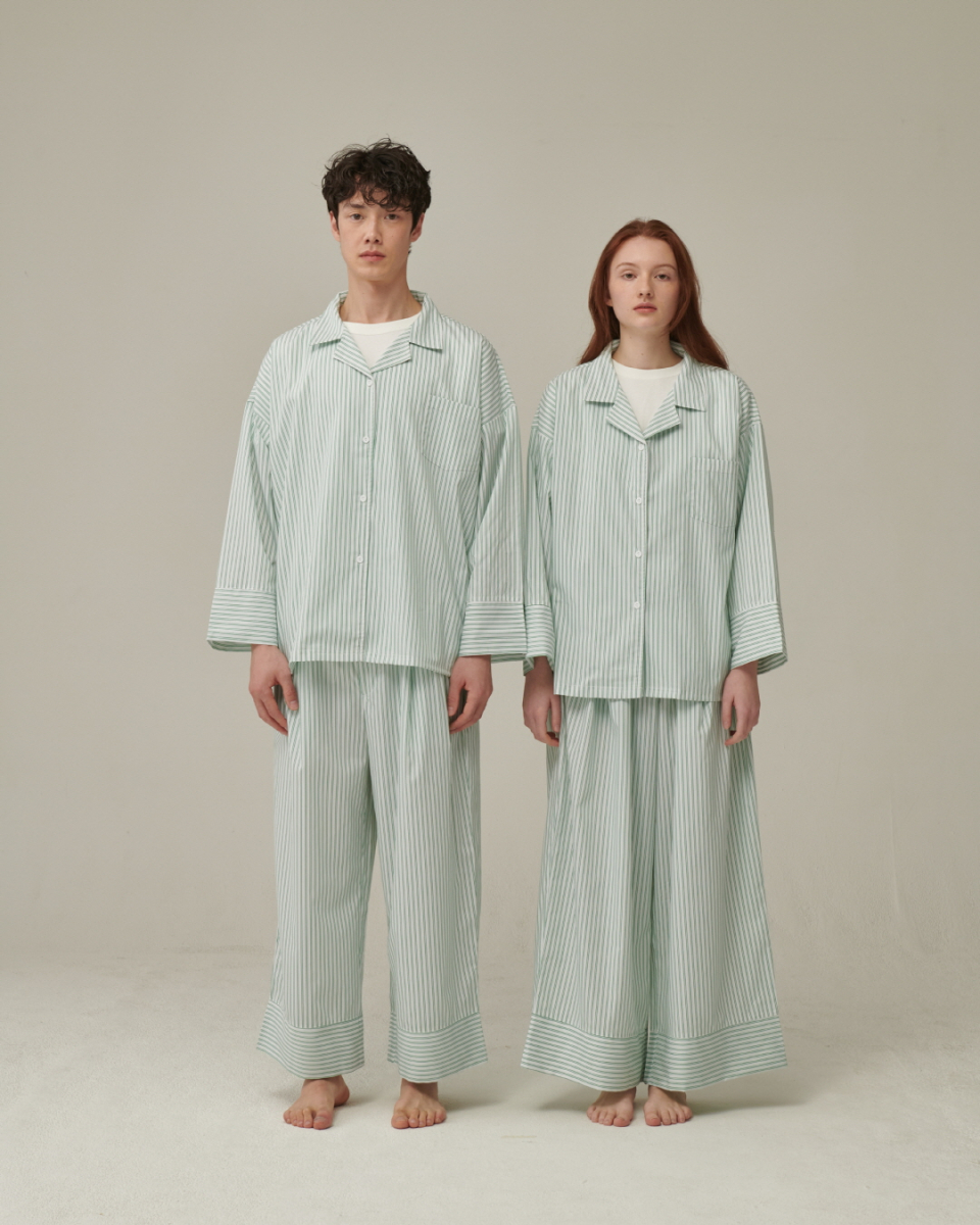 (uni)도미토리 펜슬 스트라이프 파자마 그린