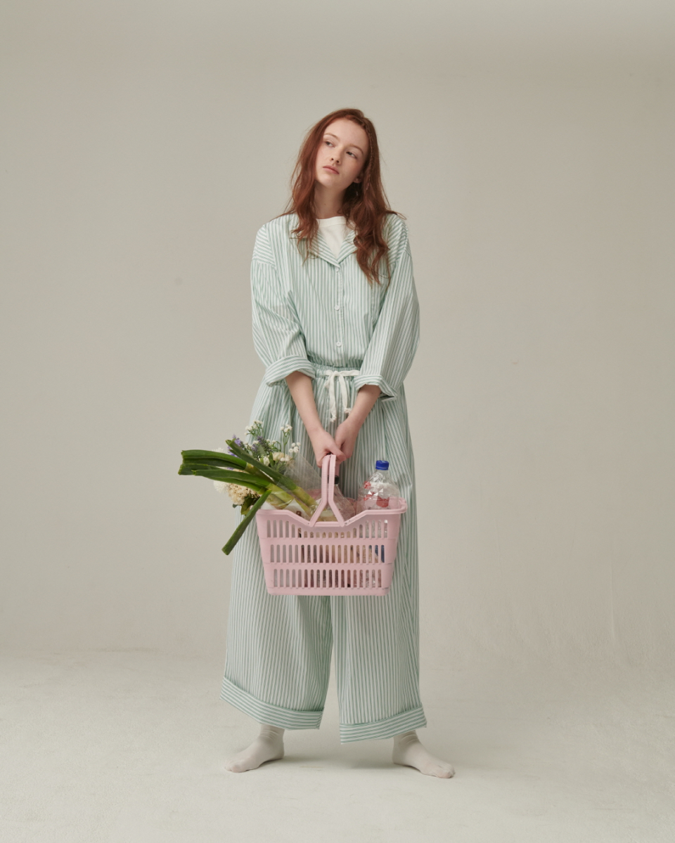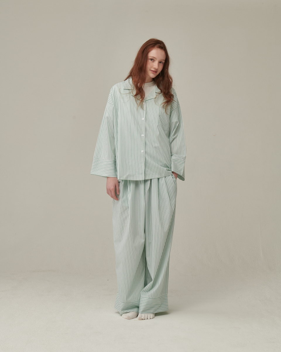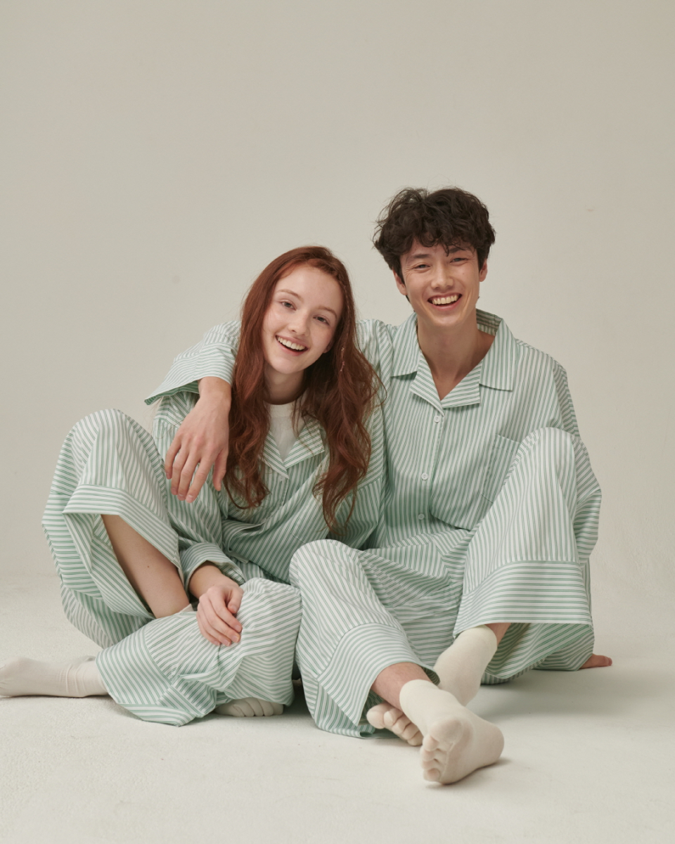 (uni)도미토리 펜슬 스트라이프 파자마 그린