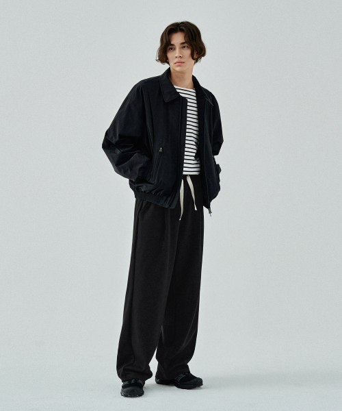 에센셜 원턱 와이드 스웨트 팬츠 [블랙]