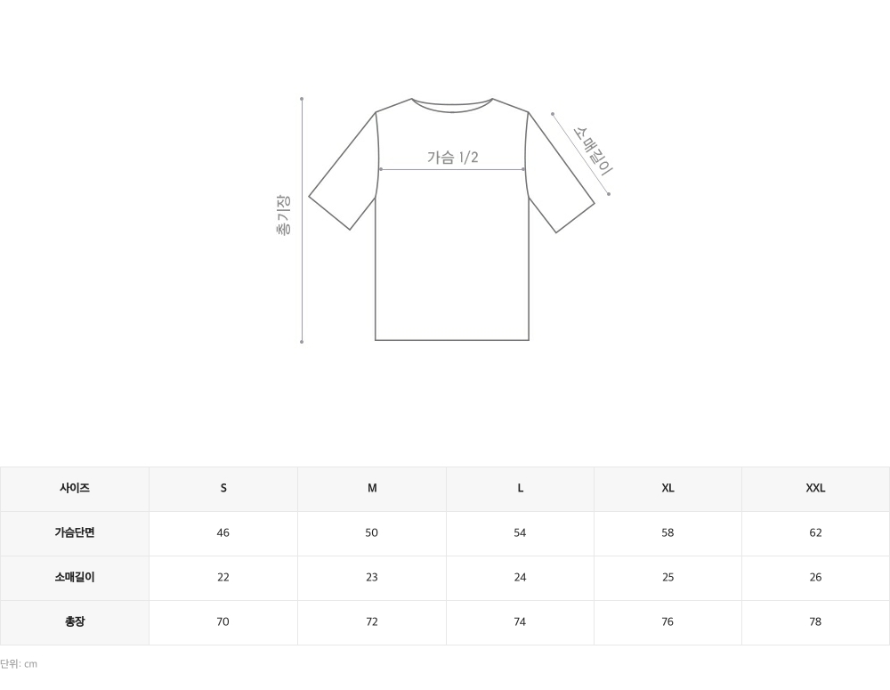 | 소매길이 | 22 | 23 | 24 | 25 |
