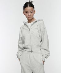 우먼즈 볼륨 크롭 후디드 스웨트 집업 [멜란지 라이트 그레이]