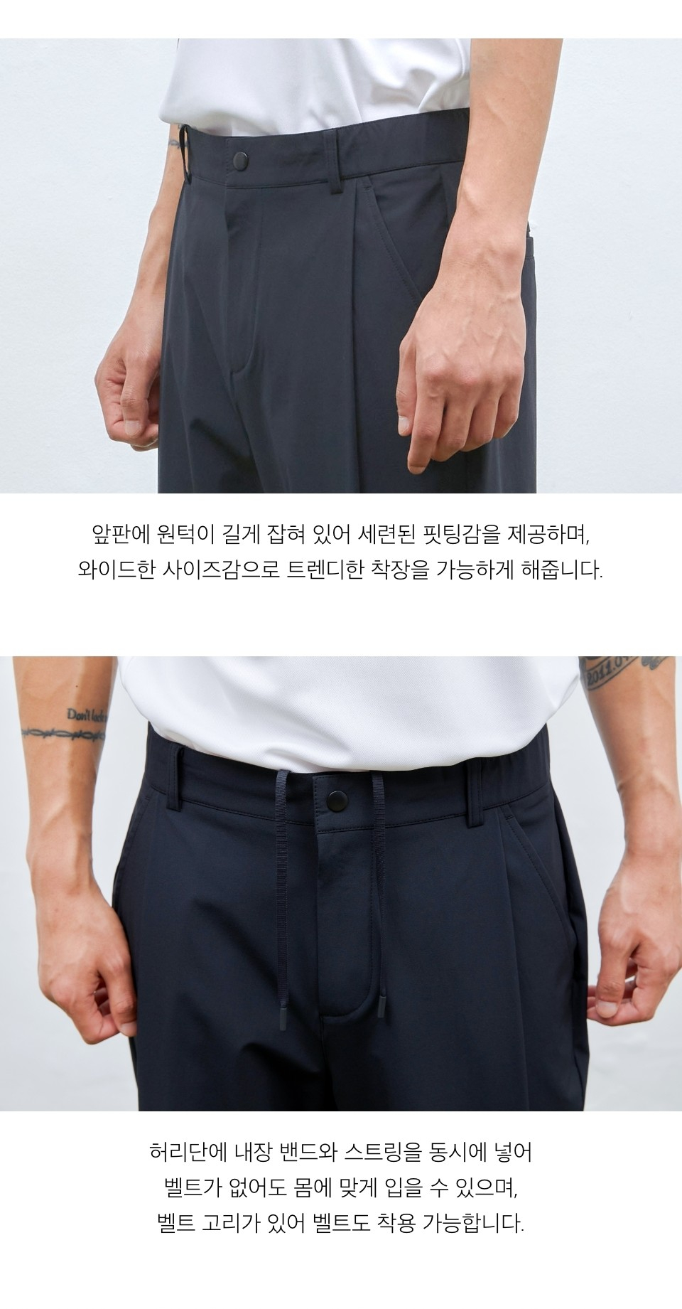 무브라이트 와이드 핀턱 팬츠 (블랙)