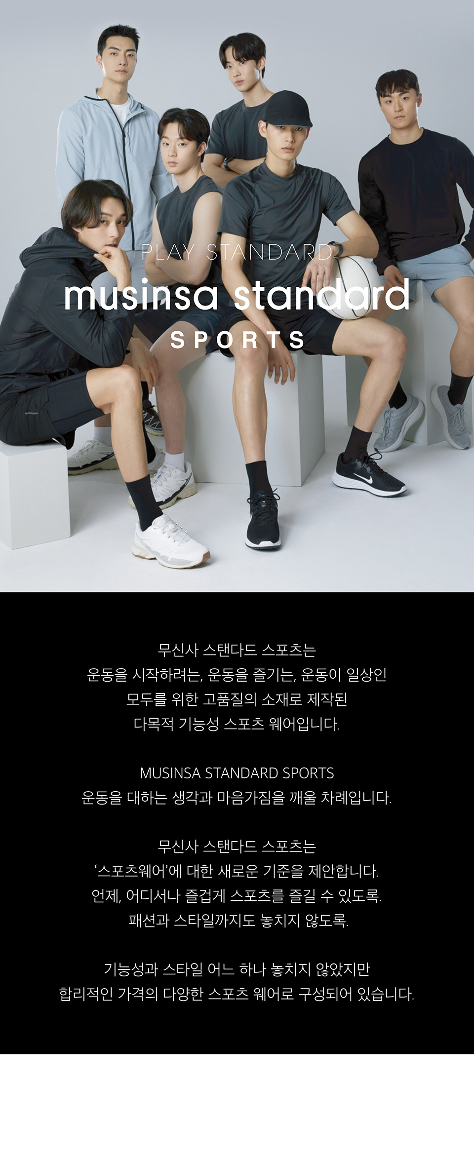 무신사 스탠다드 스포츠(MUSINSA STANDARD SPORTS)는 스포츠를 즐기는 고객을 위한 전문화된 소재와 기능성의 상품을 제공하는 기능성 스포츠 웨어 라인입니다. 일상에서 다목적 스포츠 활동을 즐기며 멀티 활용이 용이하도록 필요한 기능만을 탑재한 우수한 품질의 상품을 지향합니다.