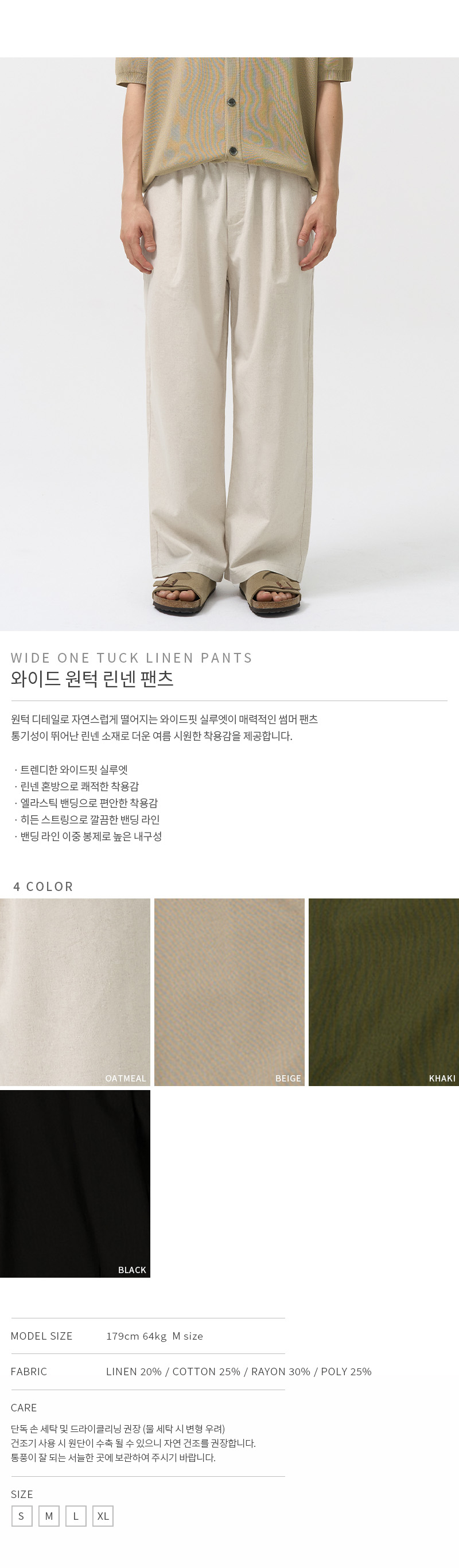 와이드 원턱 린넨 팬츠 (4 COLOR)