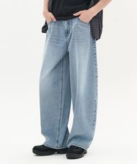 커브드 와이드 데님 팬츠 (LIGHT BLUE)