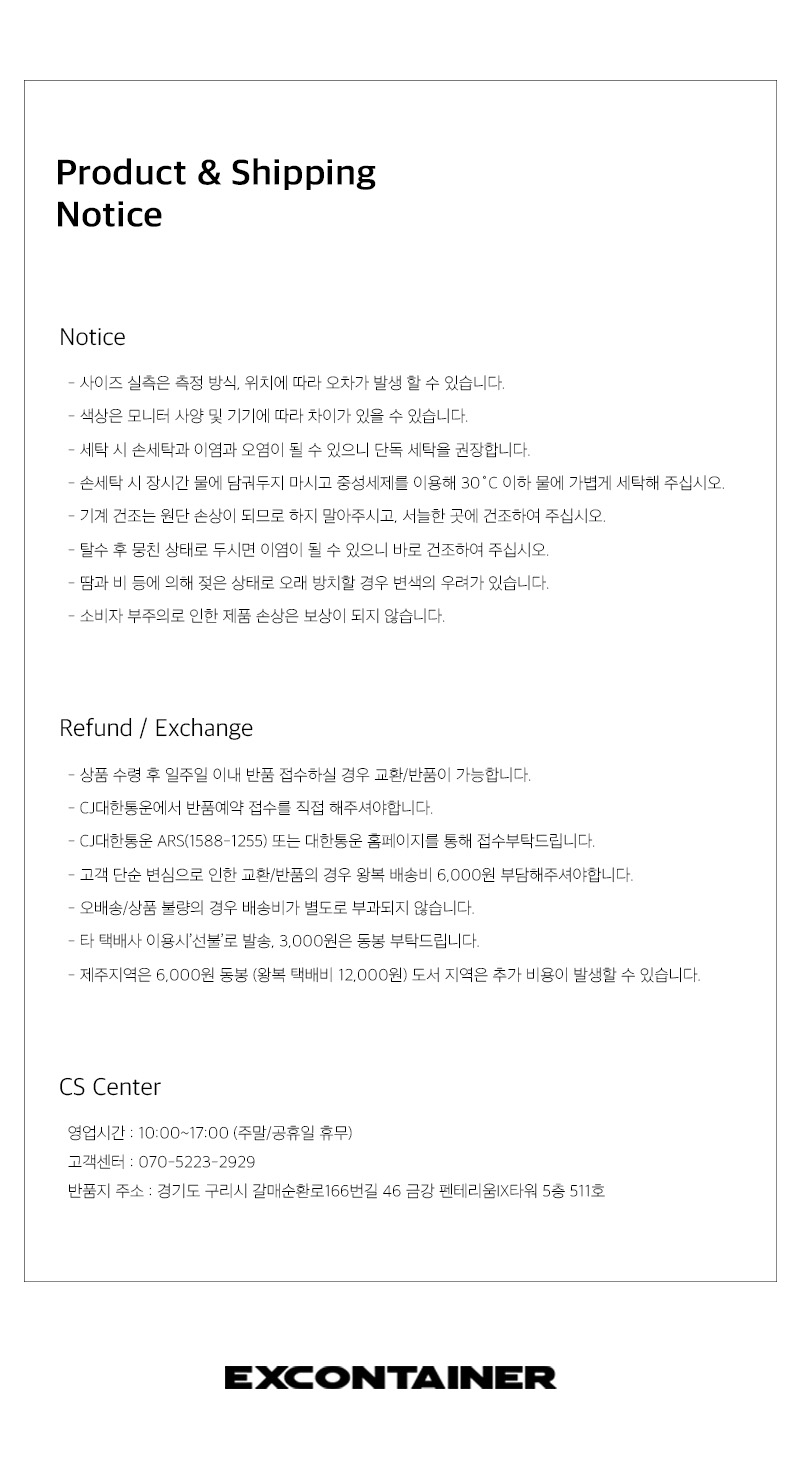 엑스컨테이너(EXCONTAINER)는 ‘excess(과한 것)’에서 벗어나 본질만을 남기는 철학을 바탕으로 합니다. ‘CONTAINER’는 필요한 것만 담는 최소한의 그릇을 의미합니다. 불필요한 요소를 덜어내고 필요한 가치만을 담아내는, 담백하고 본질적인 브랜드입니다.