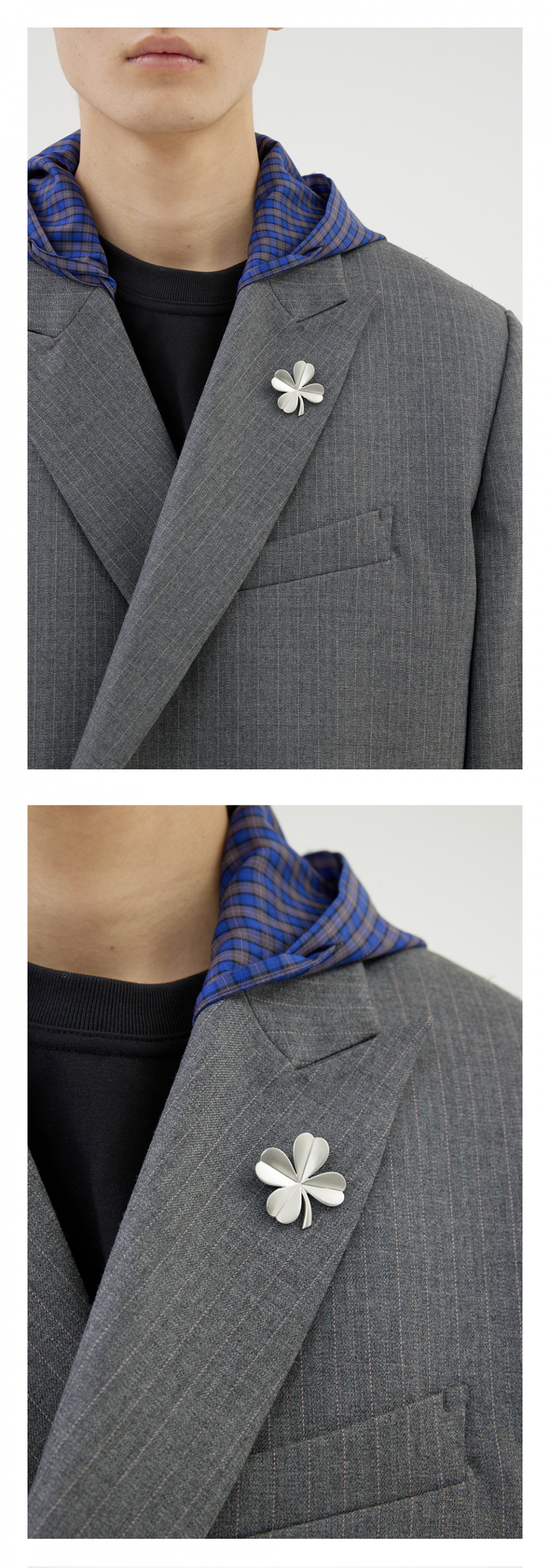 브라스 소재로 제작된 매트한 실버 컬러의 네잎클로버 형태 브로치입니다. 후면부의 잎사귀 패턴의 가공을 통하여 생동감을 더해줍니다. 일상생활에 적합한 크기로 디자인되어, 위트 있는 코디네이션이 가능합니다.