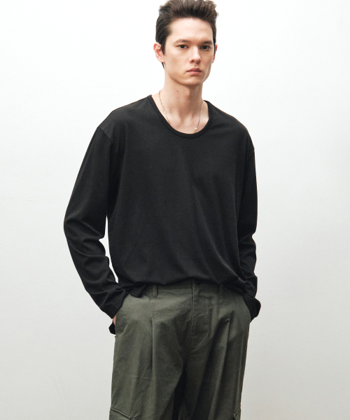 실키 블렌디드 U넥 티셔츠 (블랙)