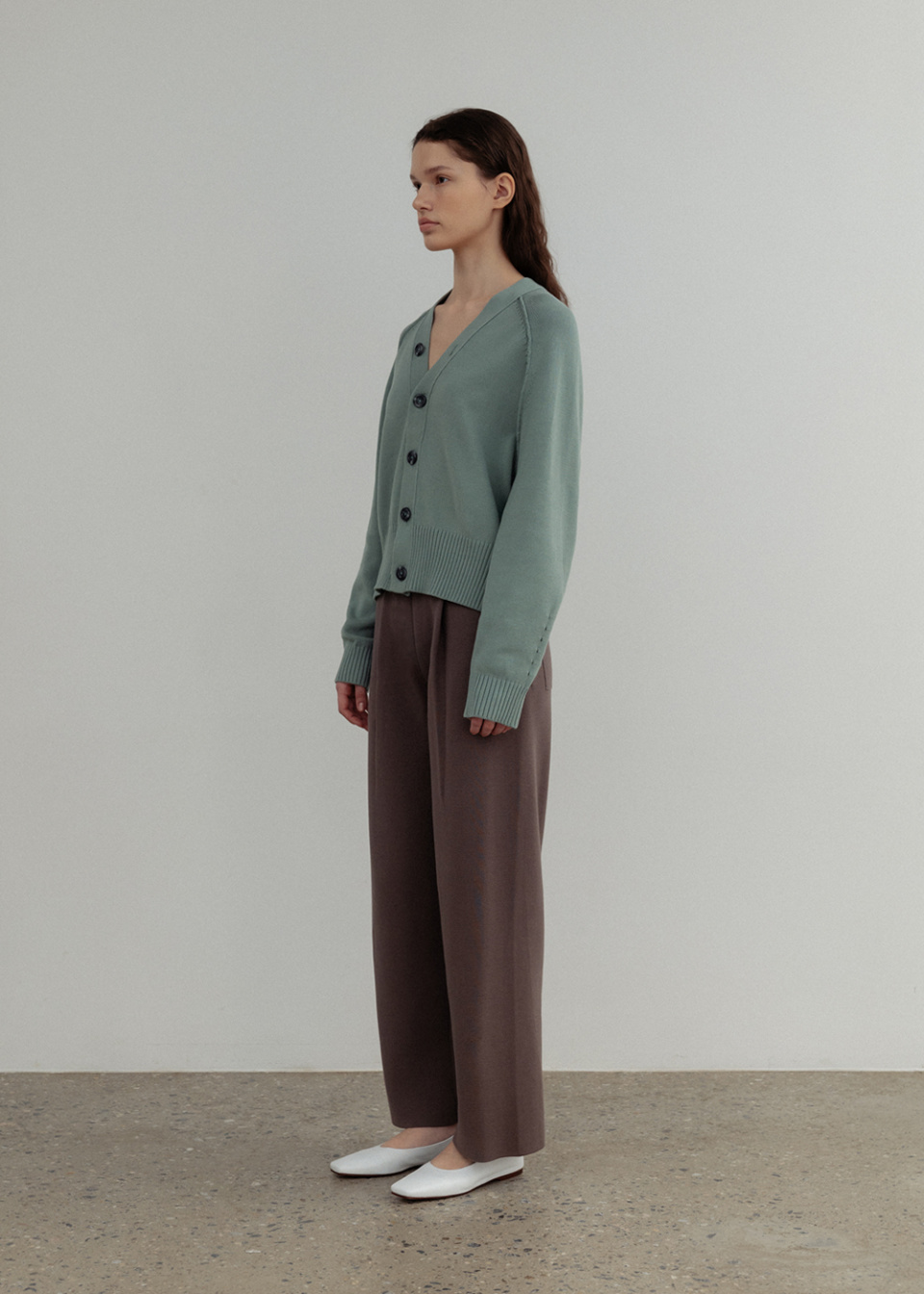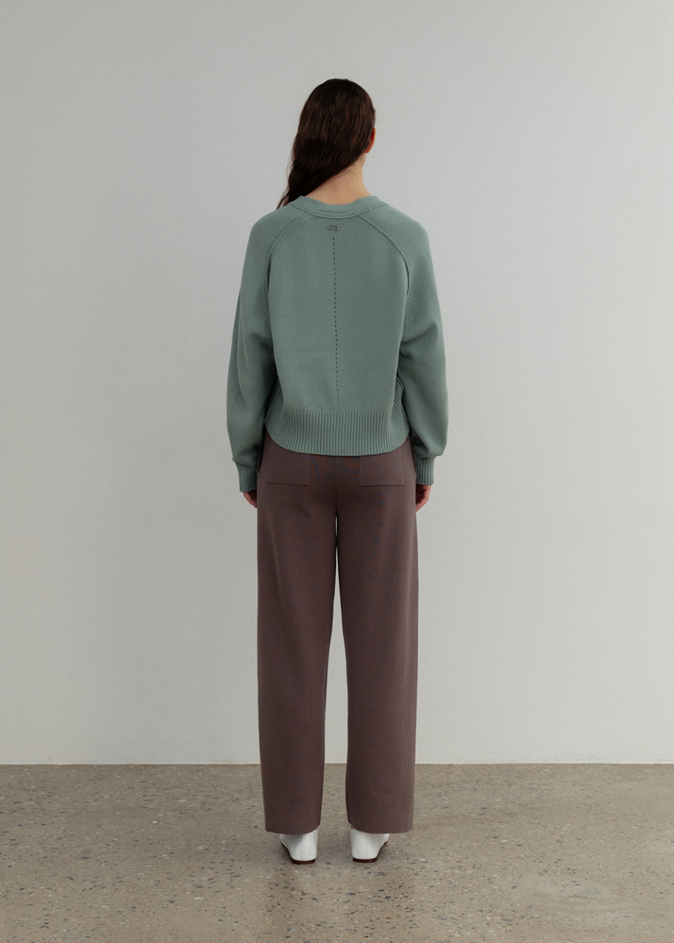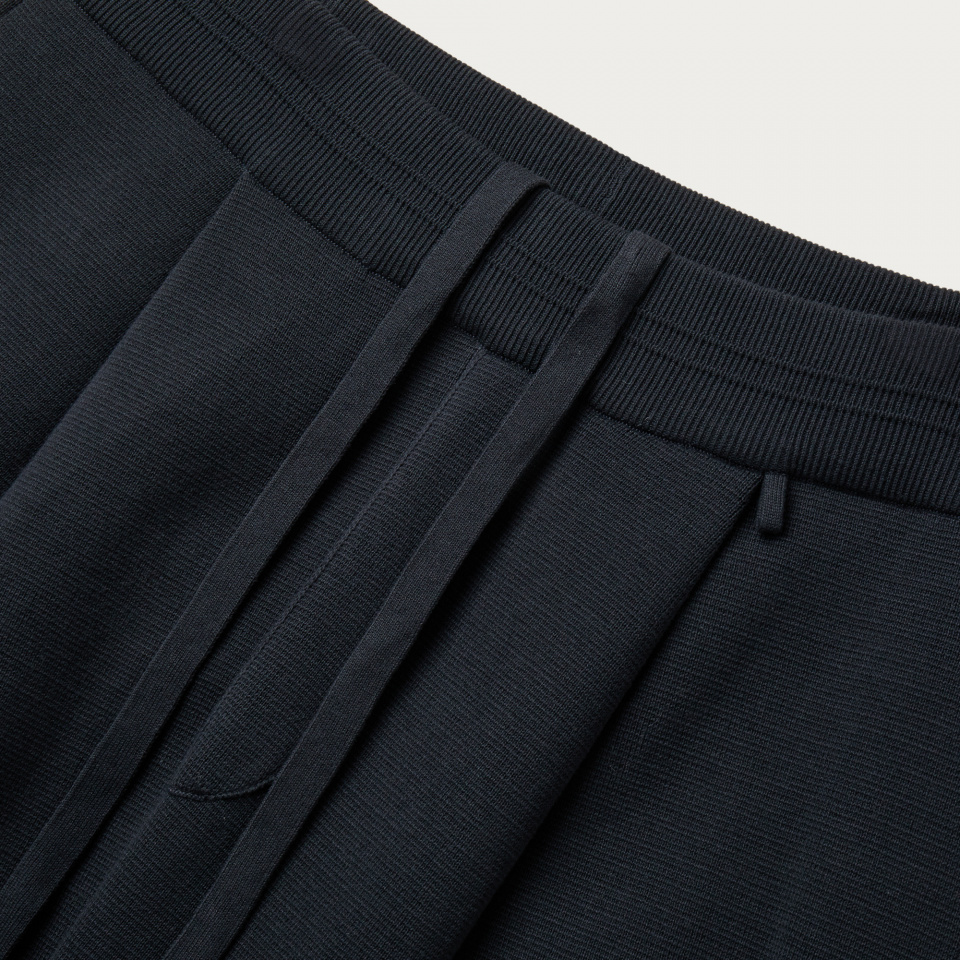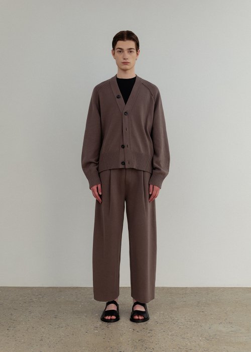 원재료가 지닌 고급스러운 광택감과 클린한 느낌은 살리면서 턱팬츠의 안정적인 형태감을 만들어 내기 위하여 탄탄한 밀라노 립 조직을 적용한 제품입니다. 니트 소재에서 느껴지는 특유의 여유롭고 고급스러운 무드와 함께 UMARMUNG만의 고난도 니트 테일러링 기법을 경험할 수 있는 유니크한 팬츠입니다.