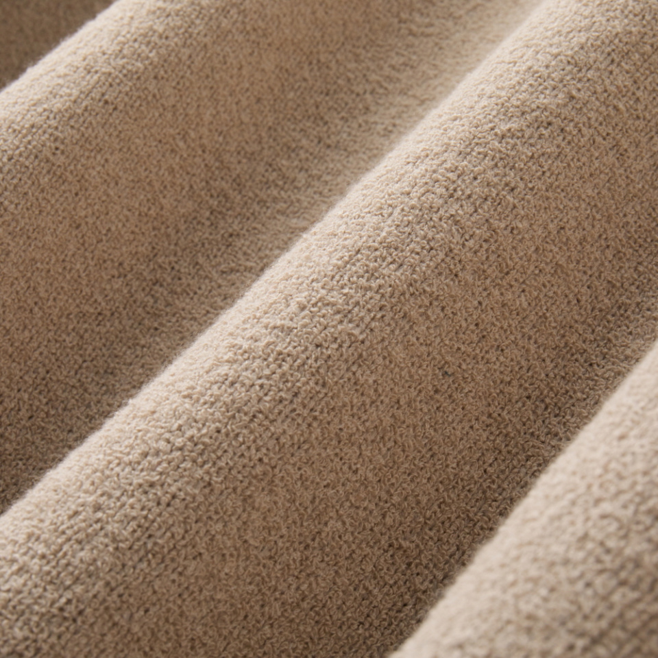 가볍고 청량한 무드의 천연 면 베이스 부클 소재입니다. 강한 꼬임을 더해 가슬가슬하면서도 내추럴한 촉감을 연출해 낸 섬세한 면 섬유를 미세한 하이텐션 나일론에 감아 생산된 특별한 원사로 UMARMUNG만을 위하여 오랜 기간을 두고 특별 제작되었습니다. 천연 면소재 특유의 러프한 감성은 가득 담으면서도 코어에 숨겨진 기능성 나일론 덕분에 신축 복원력까지 우수한 소재입니다.