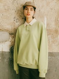 코튼 카라 배색 스웻셔츠 올리브