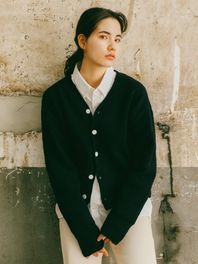 소프트 부클 가디건 네이비
