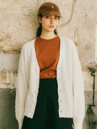 에센셜 부클 니트 가디건 아이보리