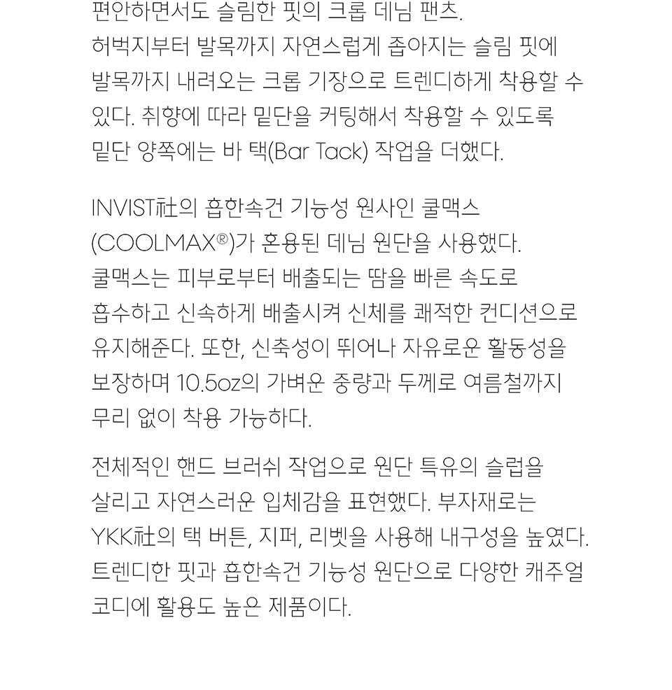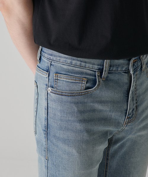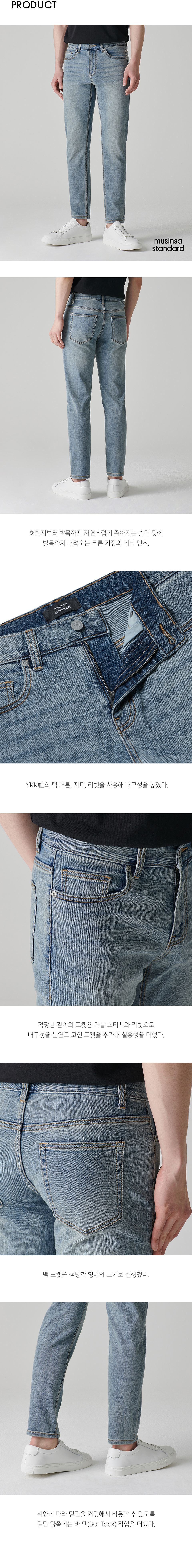 [쿨탠다드] 슬림 크롭 데님 팬츠 [라이트 인디고]