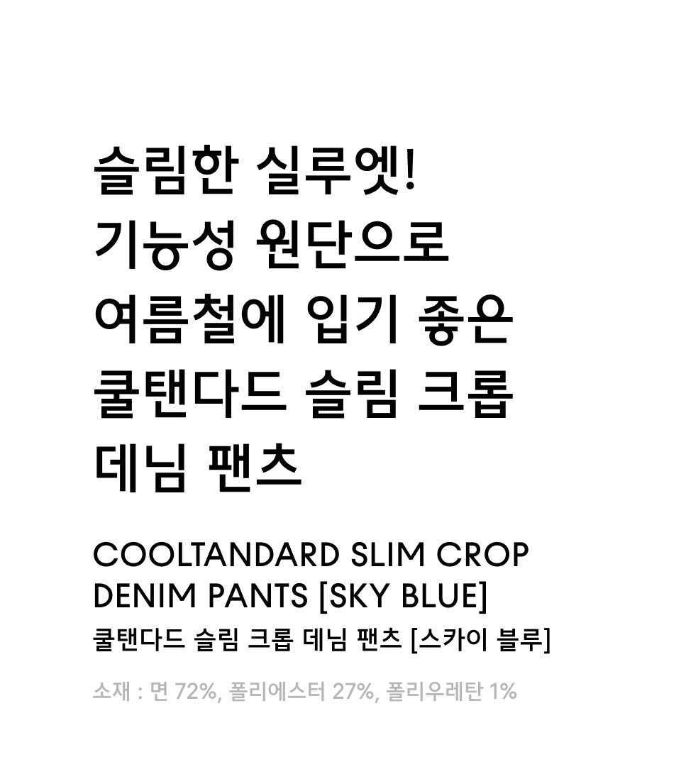 [쿨탠다드] 슬림 크롭 데님 팬츠 [스카이 블루]