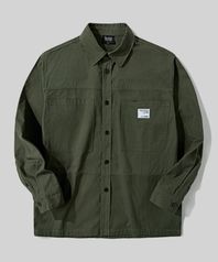 오버핏 캔버스 포켓 패치 워크 셔츠 [카키]