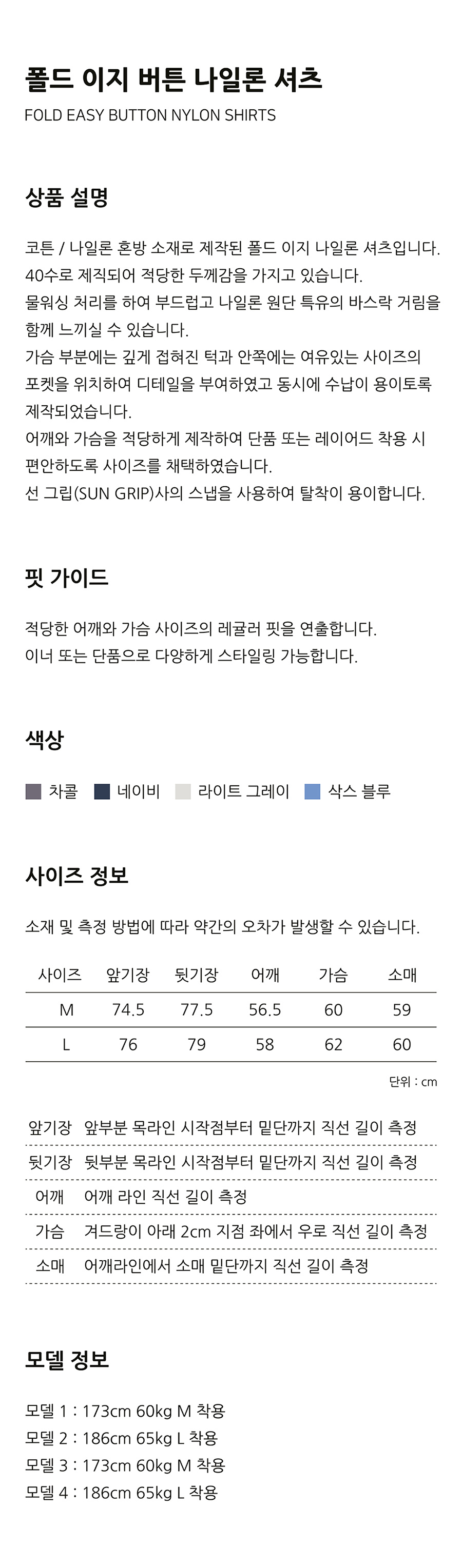 Fold Easy Button Nylon Shirts [4 Colors]