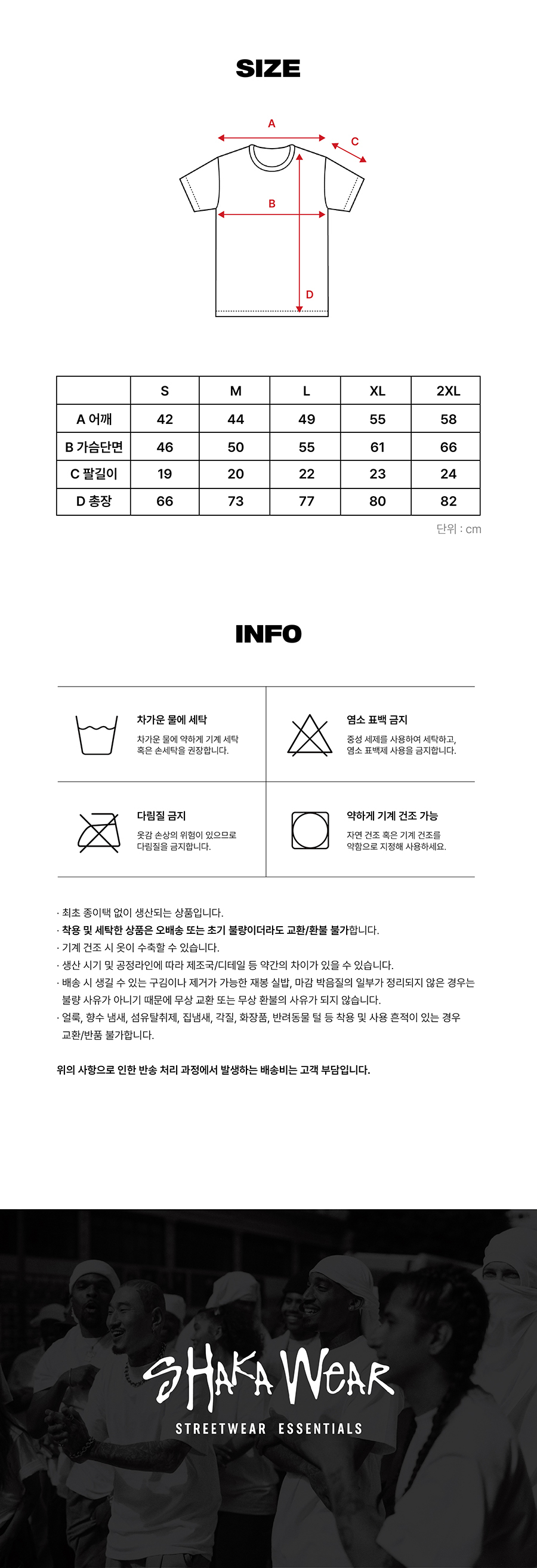 SHAKA WEAR(샤카웨어)는 경쟁력있는 가격에 최고의 품질의 티셔츠를 만들겠다는 하나의 목표로 설립되었습니다. 샤카의 가치를 이해하는 사람들에게 품질과 서비스를 제공하기 위하여 많은 노력을해왔습니다.