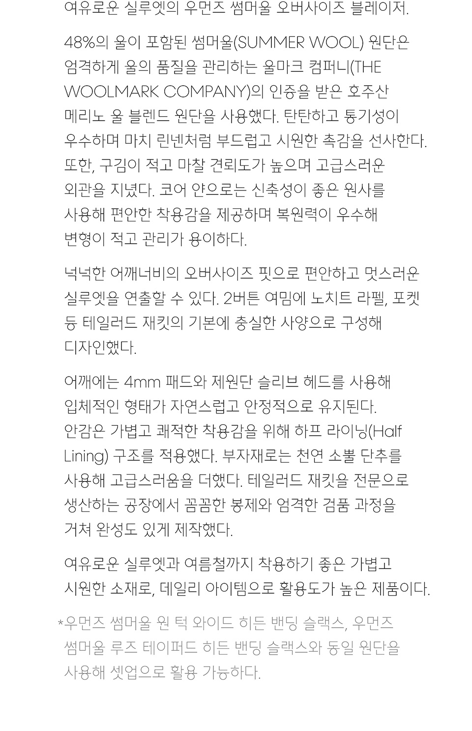 우먼즈 썸머울 오버사이즈 블레이저 [차콜 그레이]